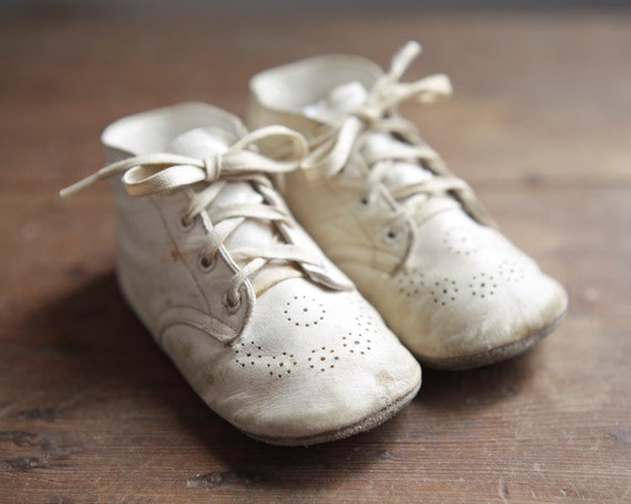Vintage baby shoes white leather lace up baby booties by - Best Sporty Baby Shoe :